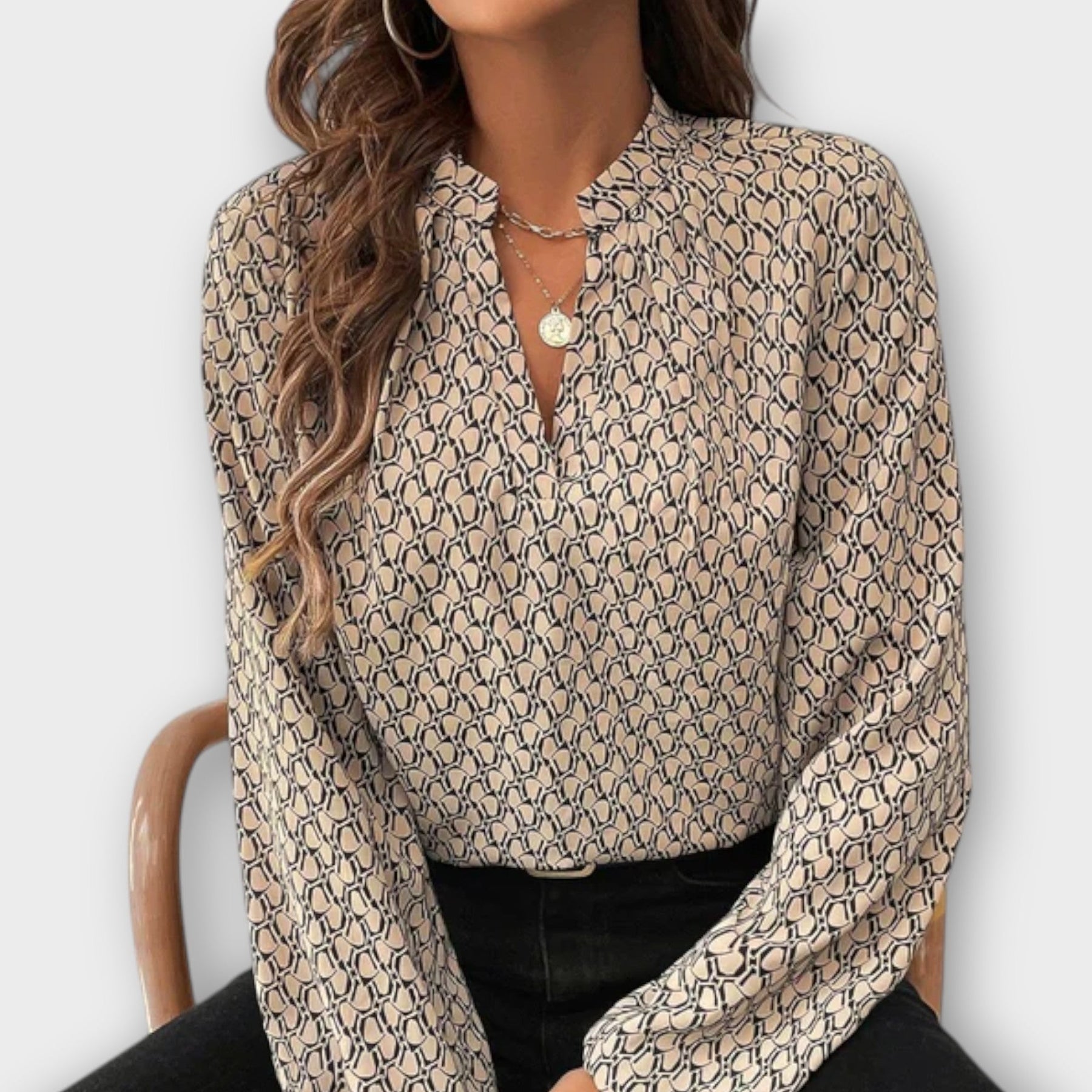 Verhoog je garderobe met de Larissa™ Patroon Blouse – een tijdloze aanvulling op je collectie!