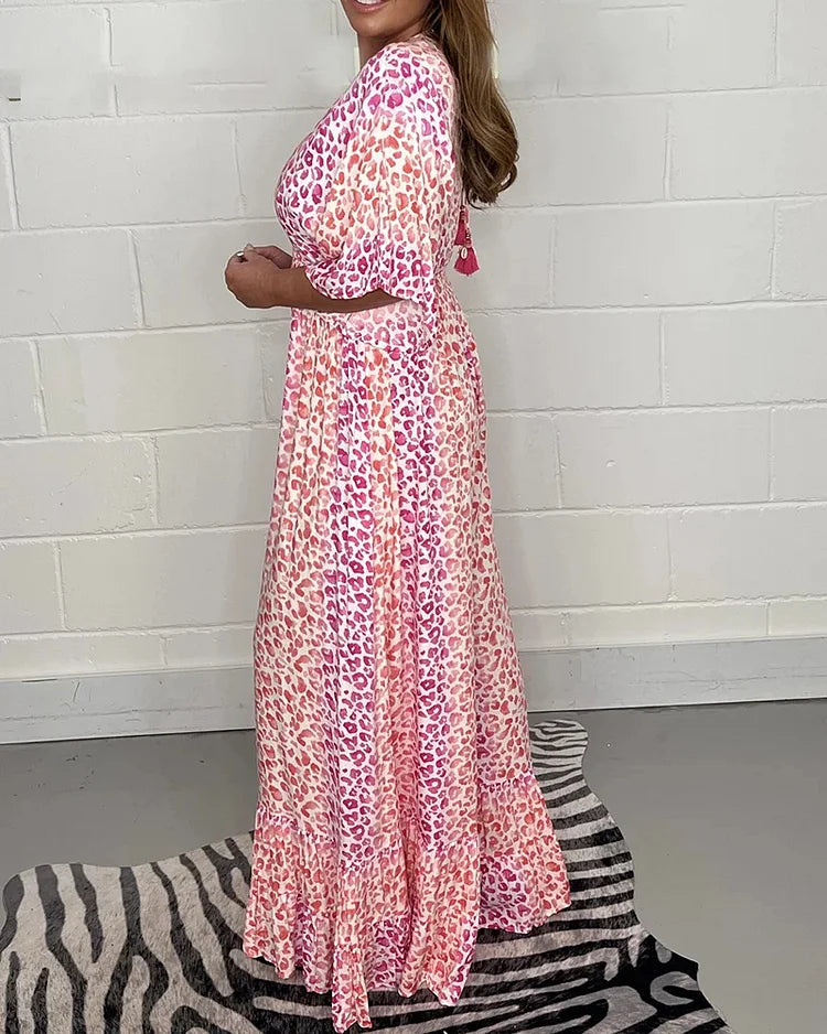 Duik in de wereld van de stedelijke jungle met onze Elara™ | V-hals Luipaard Wijde Pijpen Jumpsuit. Deze trendy jumpsuit belichaamt stijl en comfort tegelijk, perfect voor zelfverzekerde vrouwen die graag hun individualiteit tonen.