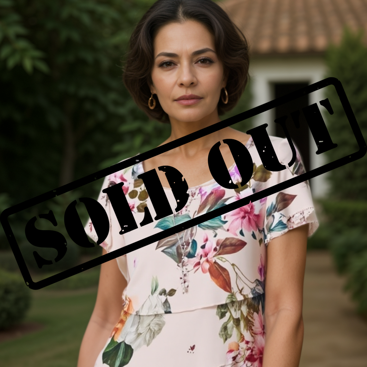 Dankzij het cascaderende ontwerp creëert deze jurk een verticale lijn die het silhouet verlengt, wat een onmiddellijk slanker effect geeft. De delicate bloemenprint voegt een vleugje vrouwelijkheid en frisheid toe, terwijl het subtiel gebieden verbergt die je misschien liever wilt verbergen.